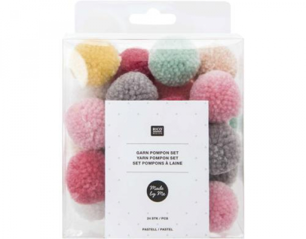 Rico Design Pompon Set Du 3 cm Pastell Mix, 24 Stück / 24 Stück, Durchmesser: 3 cm / Thema: Pompons