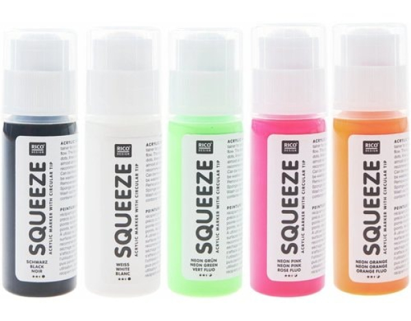 Rico Design Squeeze Acrylic Marker 5 x 60 ml, Neonfarben / 5 x 60 ml / Thema: Farben