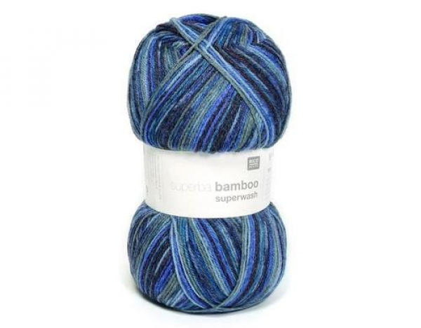 Rico Design Wolle Bamboo für Socken 4-fädig, 100 g, Blau / 100 g, 420 m, 50 % WV, 25 % PA, 25 % VI / Thema: Wolle