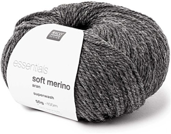 Rico Design Wolle Soft Merino aran 50 g, Grau / grau-melange, 50 g, 100 m, 100 % WV / Thema: Wolle