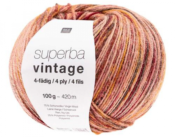 Rico Design Wolle Soft Vintage für Socken 4-fädig, 100 g, Lachs / lachs,100 g, 420 m, 75 % WV, 25 % PA / Thema: Wolle