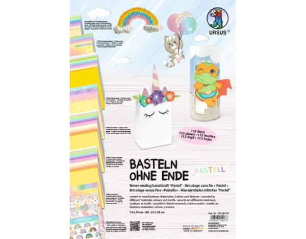 URSUS Bastelpapier Basteln ohne Ende 112 Blatt sortiert / Pastell, verschiedene Papiere / Thema: Bastelpapier