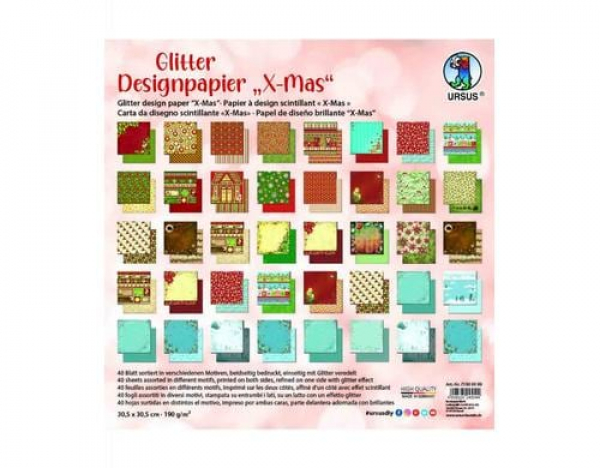 URSUS Designpapier X-Mas Glitter , , , Mehrfarbig / 40 Blatt, 30.5 x 30.5 cm / Thema: Weihnachtsbasteln