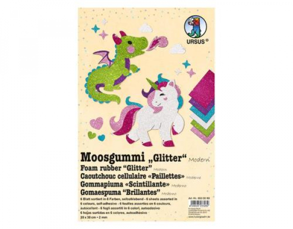 URSUS Moosgummi-Set Glitter Modern selbstklebend, 10 Stück / selbstklebend, 20 x 30 cm, 10 Blatt, 6 Far. / Thema: Moosgummi