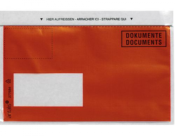 Antalis - Dokumententasche C6/5 Druck, Fenster links, 1000 Stück, Rot / rot, Fenkster links, 1000 Stück / Thema: Dokumententasche