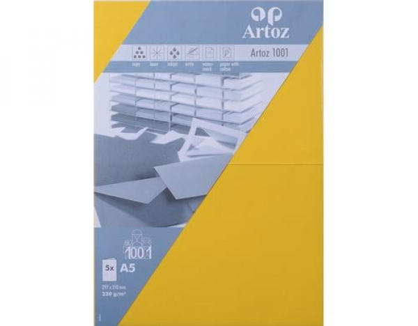 Artoz - Blankokarte 1001, A5, 5 Blatt, Sonnengelb / Sonnengelb, 5 Blatt / Thema: Karten
