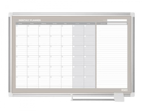 Bi-Office - Magnethaftendes Whiteboard 60 cm x 90 cm, Weiss / Monatsplaner, Aluminiumrahmen / Thema: Whiteboard/Glassboard