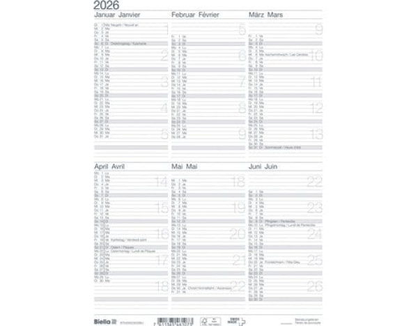 Biella Tafelkalender Tafelkalender I D/F, A4, 6 Monate pro Seite / D/F, 6 Monate pro Seite, 1 Stk / Thema: Kalender