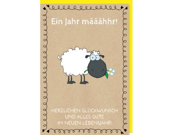 Braun + Company Geburtstagskarte Schaf 11.5 x 17 cm / 11,5x17cm / Thema: Grusskarten