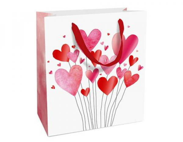 Braun + Company Geschenktasche Lovely Hearts 18 x 21 x 8 cm, Weiss/Rot / Grösse: 18x21x8cm / Thema: Geschenkverpackung