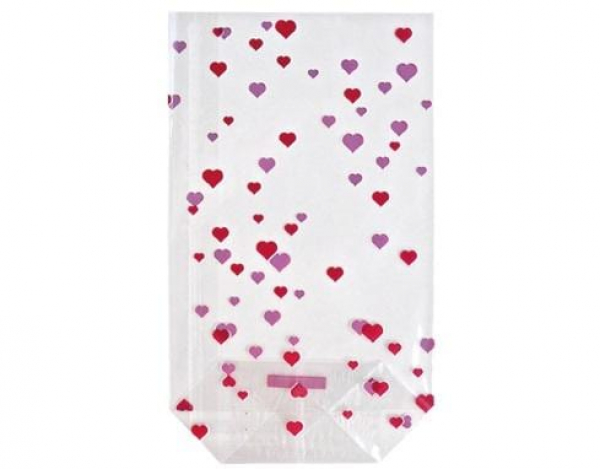 Braun + Company Guetzli-Verpackung Herzen 11.5 x 19 cm, Mehrfarbig / 10 Stück und 10 Verschlussclips / Thema: Geschenkverpackung