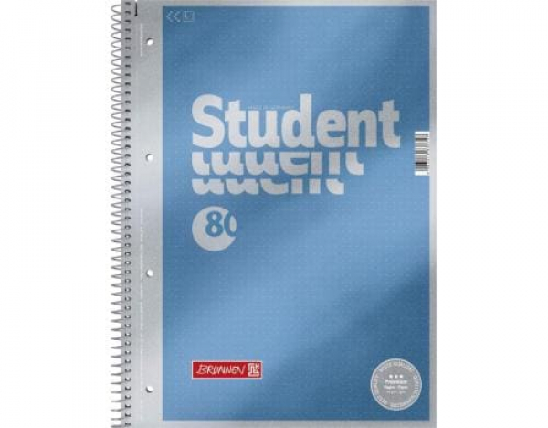 Brunnen - Collegeblock Premium Student A4, Dot, 80 Blatt / 90g/qm, A4+, 80 Seiten, Dotted, blau / Thema: Notizheft/-buch