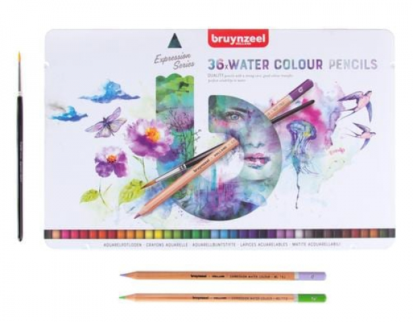 Bruynzeel - Farbstifte Expression Watercolour Metalletui, 36 Stück / 36 Stück im Metalletui, wasservermalbar / Thema: Malstifte