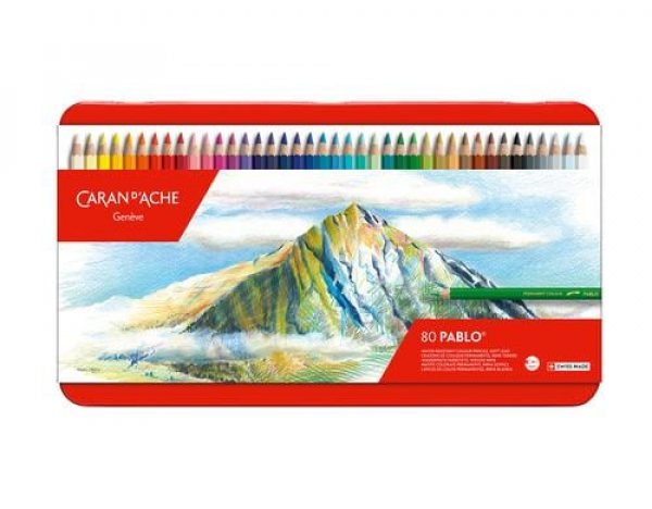 Caran d'Ache - Farbstifte Pablo 80 Stück / Metallschachtel mit 80 Farbstiften / Thema: Malstifte