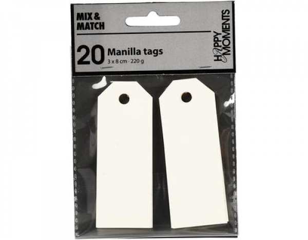 Creativ Company Geschenkanhänger Manila Tags, 3 x 8 cm, 20 Stück, Naturweiss / naturweiss, 20 Stück / Thema: Geschenkverpackung