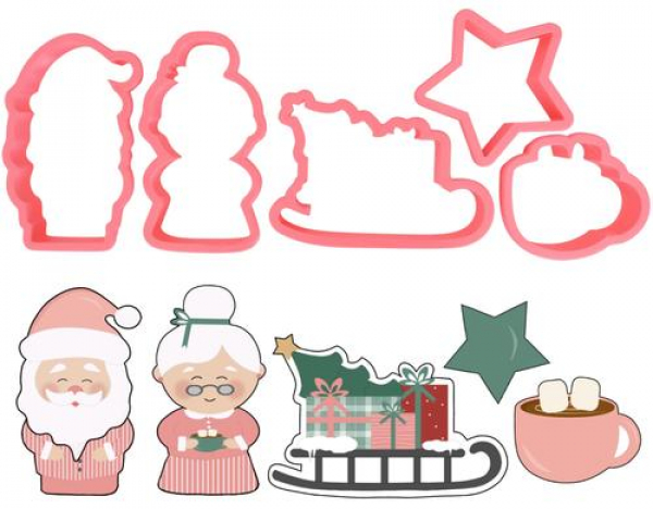 Cut my Cookies Guetzli-Ausstecher Weihnachtsserie Mr & Mrs Santa, 5-teilig / biologisch abbaubarer Kunststoff / Thema: Weihnachtsbacken