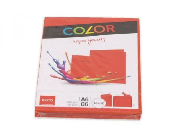 ELCO - Doppelkarte mit Couvert Color A6/C6 Rot, 20 Stück / 2x10 Stk., rot / Thema: Couvert