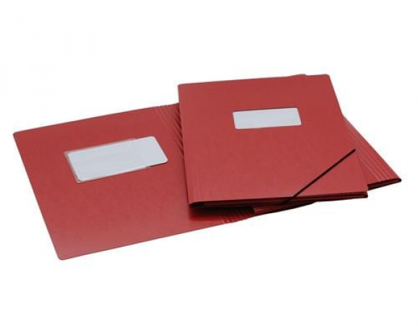 EROLA Gummibandmappe Pressspan A4 Rot / mit Beschriftungsschild. 3 Klappen rot / Thema: Mappen