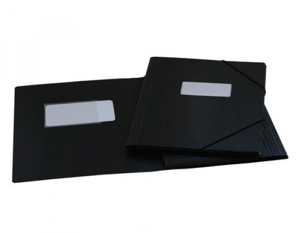 EROLA Gummibandmappe Pressspan A4 Schwarz / mit Beschriftungsschild. 3 Klappen schwarz / Thema: Mappen