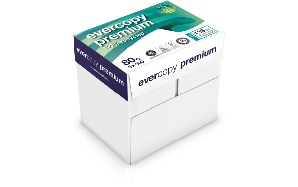 Evercopy Kopierpapier Premium 5 x 500 Blatt, 80g, Weiss / A4, 80 g/m2, Karton à 2500 Blatt, CIE 135 / Thema: Kopierpapier