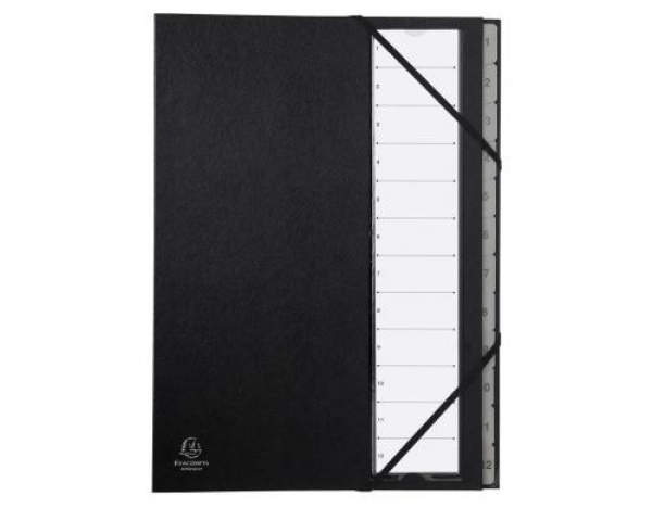 Exacompta Ordnungsmappe Ordonator A4, 12 Fächer, Schwarz / schwarz / Thema: Mappen