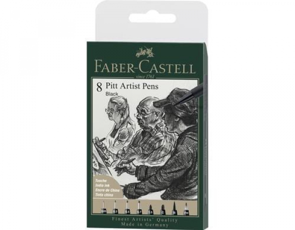 Faber-Castell - Tuschestift PITT Artist Pen Black, 8 Stück / schwarz, XXS/S/F/M/1.5/C/B/FH 8 Stk. / Thema: Malstifte
