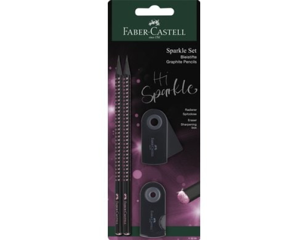 Faber-Castell Schreibset Sparkle Mid Rose / 2 Bleistifte, Radierer, Spitzer, im Blister / Thema: Bleistift