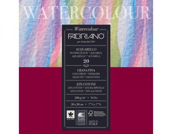 Fabriano - Aquarellblock 20 x 20 cm, 200g/m2, 20 Blatt / 200g/m2, 20 Bl, Kalt gepresst, 20 x 20 cm / Thema: Malblöcke