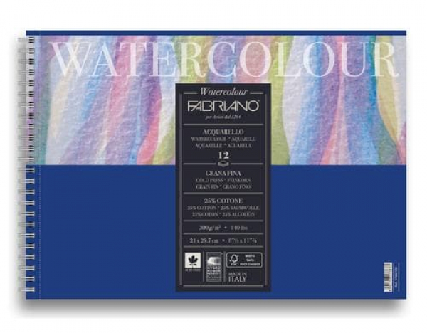 Fabriano - Aquarellblock Spiralbuch A4, 12 Blatt / 300g/m2, 12 Bl, Kalt gepresst, A4 / Thema: Malblöcke