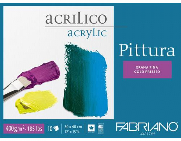 Fabriano - Malblock Pittura 30 x 40 cm, Acryl, 10 Blatt / 400g/m2, 10 Bl, Kalt gepresst, 30 x 40 cm / Thema: Malblöcke