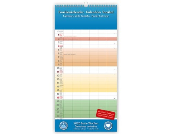 TH Familienkalender Bunte Wochen 2026 / 22 x 45 cm / Thema: Kalender
