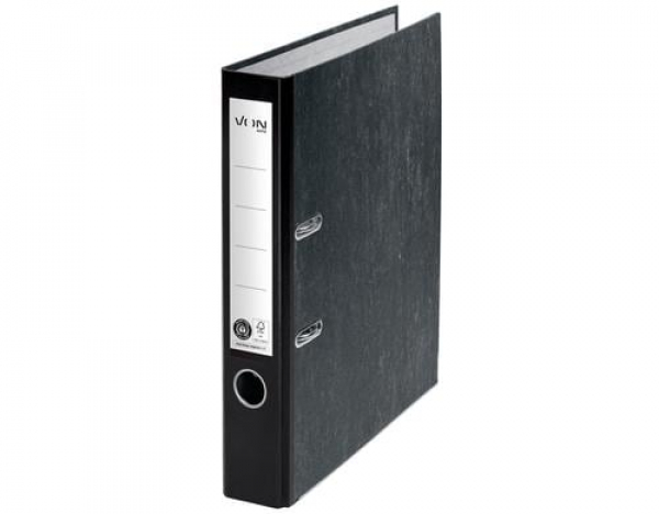VON - Ordner 5 cm, Schwarz / 100 % Recyclingkarton, Rücken schwarz / Thema: Ordner