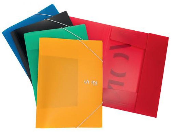 VON Gummibandmappe A4, 5 Stück, Mehrfarbig / mit elastischen Eckbändern, PP, 5 Stk. / Thema: Mappen