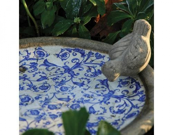 Esschert Design Vogeltränke Aged Ceramic / L 33,5 x B 33,5 x H 10,8 cm / Thema: Futterstelle