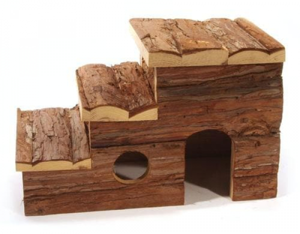 SwissPet Häuschen Hamsterhaus mit Treppendach / 29x18x18cm, Naturholz / Thema: Häuschen