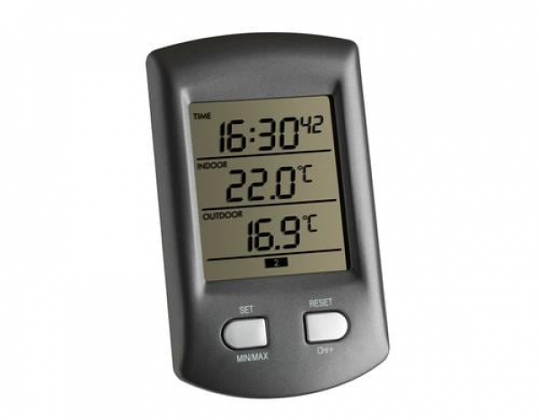 TFA Dostmann Funk-Thermometer RATIO Grau-Metallic / ohne Batterie, mit Sender 30.3163 / Thema: Umweltmessgeräte