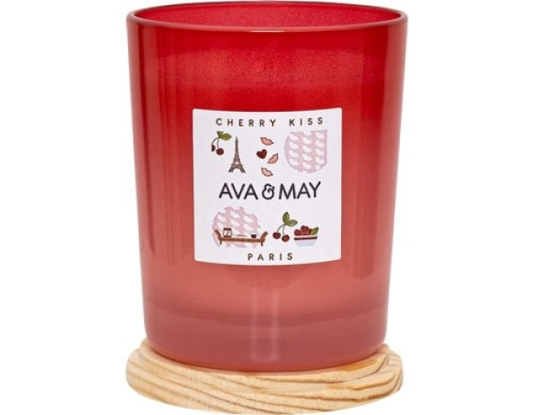 AVA & MAY Duftkerze Cherry Kiss 180 g / 8x8x10 cm, 100% Sojawachs, 40h Brenndauer / Thema: Duftkerzen