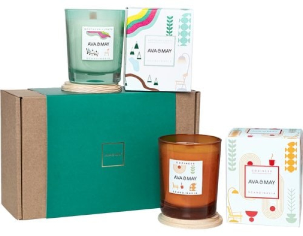 AVA & MAY Geschenkset Cozy Glow 2 x180 g / 2x180 g, Coziness & Northern Light / Thema: Duftkerzen