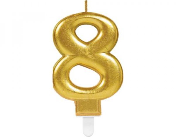 Amscan Zahlenkerze Nummer 8, 1 Stück / Gold / Thema: Dekokerzen