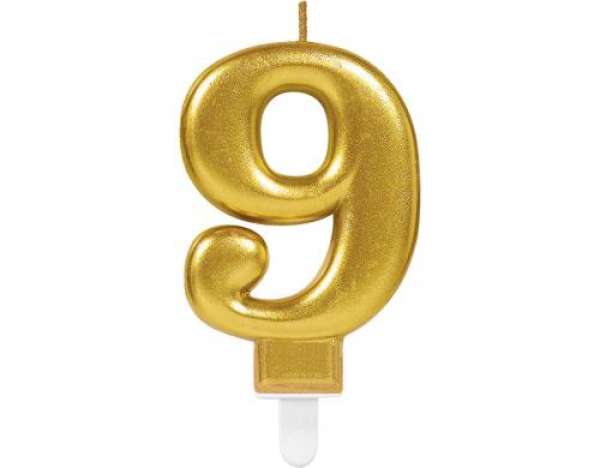 Amscan Zahlenkerze Nummer 9, 1 Stück / Gold / Thema: Dekokerzen