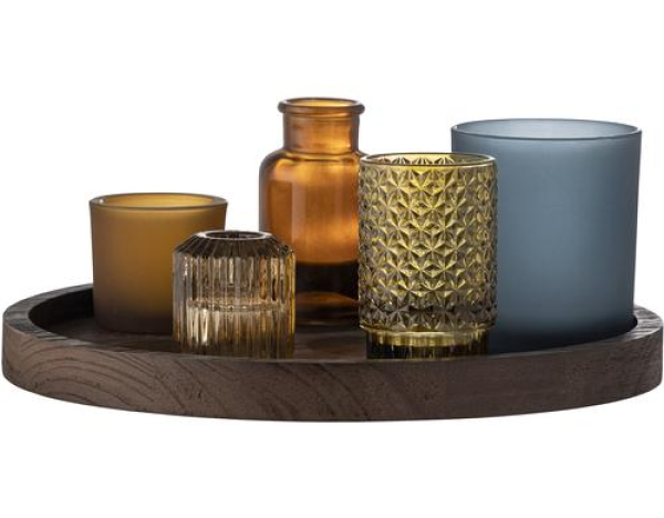 Bloomingville Windlicht Sanga 6er Set, Glas/Holz / Durchm.30xH10.5 cm, Glas / Thema: Windlichter