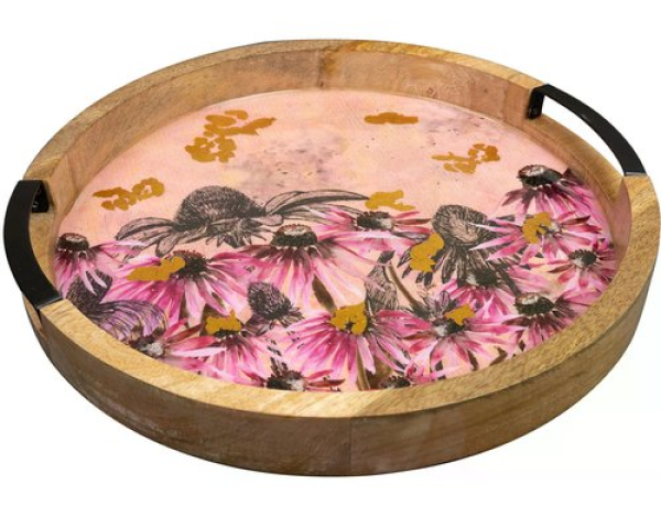 CHALET Dekoteller Polly Durchm. 35, Pink / 35x35x4cm pink, Mangoholz, Indien / Thema: Deko-Accessoires