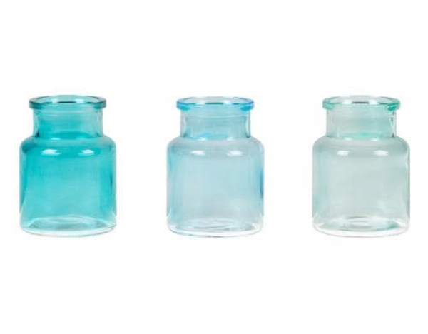 CHALET Vasen-Set S 3 Stück, 7.5 cm, Blau / Grösse: 17.5x5.5x7.5, Glas, Blau / Thema: Vasen