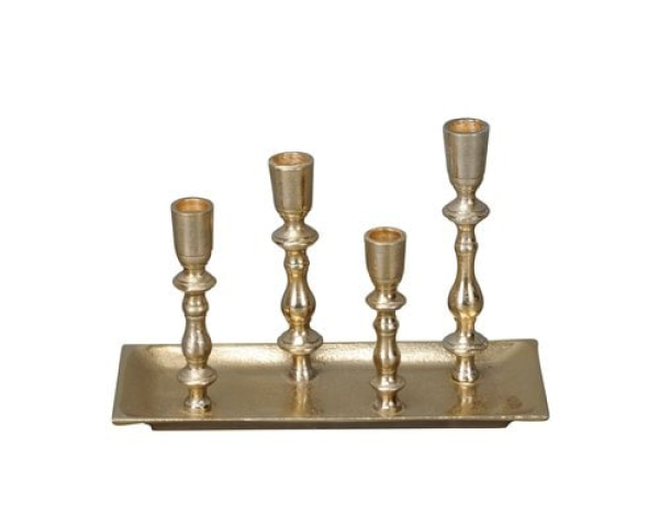 COCON Kerzenhalter mit Tablet 4 Stück, Gold / 29.5x12x20cm, hellgold, Aluminium / Thema: Kerzenständer und -halter