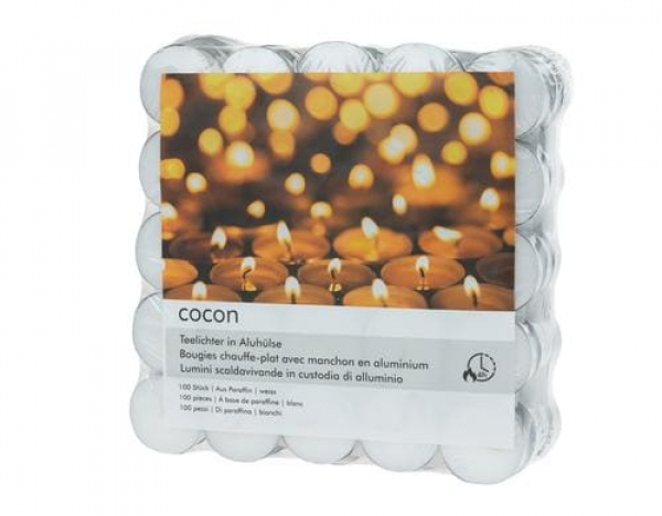 COCON Teelichter in Aluhülse 100 Stück, Weiss / 100 Stk. Weiss, Brenndauer 4 Stunden, / Thema: Wachskerzen