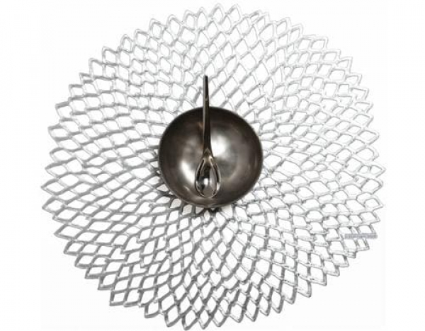 Chilewich Tischset Dahlia 39 cm x 36 cm, Silber / Silver, Round 36 x 39 cm/ Thema: Tischdecken