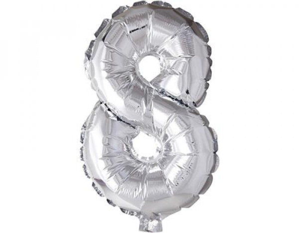 Creativ Company Folienballon 8 Silber / 1 Stück, Höhe: 41cm / Thema: Luftballon