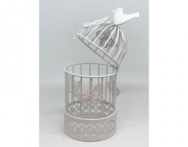 Dameco Vogelkäfig mit Schmetterlingen 22 cm, Weiss / mit Schmetterlingen verziert, D10cm H22cm / Thema: Deko-Accessoires