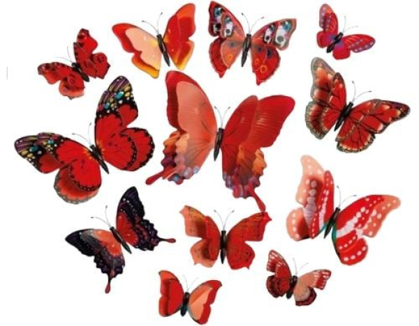 Dekomat AG Aufhänger Schmetterlinge 12 Stück, Rot / 12, 6-12 cm, Kunsstoff / Thema: Deko-Accessoires