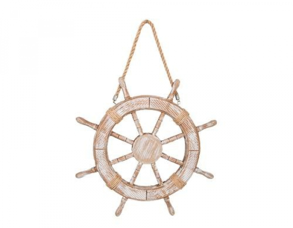 Dekomat AG Aufhänger Steuerrad Du 42 cm / Holz mit Tau, D: 42 cm / Thema: Deko-Accessoires